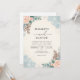 De délicieuses fleurs de pêche et un feuillage bleu dépoli s'entremêlent dans un design charmant et capricieux. Cette oeuvre évoque une atmosphère sereine et romantique, parfaite pour une occasion spéciale. La palette de couleurs douces crée une impression élégante et inoubliable pour votre journée mémorable.