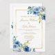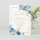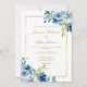 Invitation Mariage d'hiver Floral Élégant Or Bleu Soirée