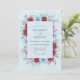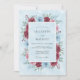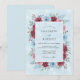 Cette création présente une riche palette de lavis à l'aquarelle de bourgogne profond et de bleu poussiéreux doux. De luxuriantes roses, des anémones délicates et du feuillage d'eucalyptus créent une atmosphère romantique parfaite pour un événement saisonnier. De petites baies et des feuilles verdoyantes ajoutent une touche de charme à l'arrangement floral peinturluré.