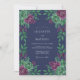Un fond bleu marine profond donne le ton pour ce design, qui présente une luxuriante composition de roses aquarelles dans des nuances de prune et de vert émeraude. Un feuillage complexe et des feuilles verdoyantes accentuent le design, créant un look botanique riche et sophistiqué. Idéal pour une soirée d'hiver élégante, l'œuvre d'art combine des motifs floraux classiques avec une palette sombre et audacieuse.