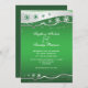 Invitation à un mariage d'hiver vert, gris argenté, blanc flocon de neige, avec une bande ondulée en gris argenté avec des étoiles et d'élégants flocons de neige sur un arrière - plan vert dégradé. Moderne et contemporain mais adapté pour un mariage traditionnel. Ce design modèle élégant, élégant et élégant fait partie d'un ensemble mariage et est entièrement personnalisable. Un choix parfait pour les mariages d'hiver, de décembre ou de Noël.