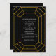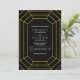 parties scintillant d'or géométrique Abstraite bijou en diamant faire-part de mariage moderne. Cette conception contemporaine et élégante d'invitation de mariage présente une forme de diamant géométrique en parties scintillant d'or FAUX sur arrière - plan noir. Il est parfait pour votre mariage d'hiver.