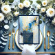 Invitation mariage d'illustration Abstrait Blue & Gold Ink