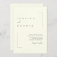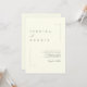 Élevez vos invitations de mariage avec ce design de typographie de script moderne, minimaliste et élégant. Cette invitation comporte un arrière - plan ivoirien propre qui permet à la belle typographie de script de prendre le centre de la scène. L'esthétique minimaliste crée un look intemporel et sophistiqué, parfait pour un mariage moderne. Caractéristiques clés : Design moderne : Le design élégant et contemporain est parfait pour les couples qui apprécient une esthétique minimaliste. Élégant script : L'élégante typographie de script ajoute une touche de sophistication et de romance à l'invitation. La combinaison classique de la palette couleur ivoire et poussière de tempête crée un look intemporel et élégant. Personnalisable : vous pouvez facilement customiser le texte pour inclure les détails de votre mariage, tels que la date, l'heure et l'emplacement. Idéal pour : Couples qui aiment un style moderne et minimaliste Mariage avec un thème classique de la palette de couleurs ivoire & tempête Poussière Ceux qui recherchent une invitation sophistiquée et élégante Commandez vos invitations aujourd'hui et créez une impression durable sur vos invités.