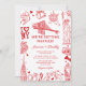Donnez une touche unique à votre jour de mariage avec nos invitations de mariage sur le thème de New York, originales et dessinées à la main ! Chaque design est une œuvre d'art, avec des doodles rouges amusants, notamment un chérubin, une boule disco, la statue de la Liberté, le pont de Brooklyn et plus encore. Facile à personnaliser avec vos informations d'événement, ces invitations de destination raviront vos invités et donneront le ton pour votre jour spécial.