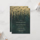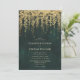 Illustration de branches d'arbres à la végétation luxuriante et sauvage et feuillage suspendu, numériquement superposés à l'or, sur un arrière - plan émeraude vert émeraude, orne ce faire-part de mariage d'été de printemps avec un thème forestier enchanté. Une invitation élégante et moderne pour un mariage de conte de fées, c'est le faire-part de mariage idéal pour les épouses qui aiment le cadre de la forêt de contes de fées, le thème de la forêt de fées ou du jardin de fées et vert émeraude.