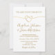 Simple, moderne, minimaliste faire-part de mariage blanc et or avec coeur romantique de corde or et écriture calligraphie manuscrite.