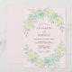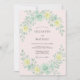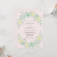 Un feuillage délicat vert menthe entoure des fleurs douces et beurrées jaunes, créant une atmosphère sereine et romantique. Ce design aquarelle évoque une sensation douce et naturelle parfaite pour une occasion printanière ou estivale. La composition aérienne suggère une élégance et une beauté discrète.