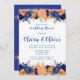 Invitation Mariage douche Fleurs Botaniques Bleu Nuit Orange