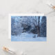 La belle photographie d'un banc entouré d'arbres fait un faire-part de mariage génial. Les arbres recouverts de gel créent une belle terre merveilleuse d'hiver.