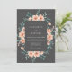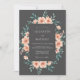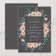 Cette conception présente des roses pêche douces et des feuilles d'eucalyptus sarcelle luxuriantes sur un fond de charbon de bois profond. L'ambiance est sophistiquée et sombre, parfaite pour une soirée romantique. Des textures délicates d'aquarelle ajoutent une touche artistique à l'arrangement botanique. Le contraste entre le fond sombre et les tons floraux chauds crée un impact visuel saisissant.