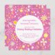 Moderne, lumineux et optimiste, jaune, vert et blanc motif de fleurs botaniques sauvages sur un arrière - plan rose. Une magnifique invitation de réception de mariage de soirée coordonnée que vous pouvez modifier pour convenir à votre propre célébration. Art original de Nic Squirrell.