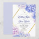 Invitation de mariage moderne et élégant avec hydrangea et poussière d'or avec un effet de versement d'encre dorée (l'or est un effet numérique, pas une véritable feuille d'or !) et calligraphie moderne. Invitation élégante et raffinée, simple et moderne.