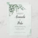Une invitation de mariage propre et élégante avec de la verdure d'eucalyptus aquarelle sur un arrière - plan sage doux. Parfait pour les mariages minimalistes, les cérémonies de jardin en plein air, les célébrations écologiques et les thèmes mariages botaniques modernes. Simple mais sophistiqué pour votre journée spéciale.