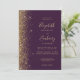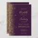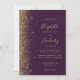Le bord gauche de cette élégante faire-part de mariage moderne présente un style de parties scintillant en faux or. Le texte personnalisable combine écriture manuscrite couleur or, copperplate et polices italiques sur un arrière - plan violet violet violet violet. L'envers est assorti d'un violet violet et d'une parties scintillant d'or.