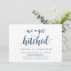 Cette carte d'invitation sur le thème Rustique (Nous sommes mariés), avec une couleur de police personnalisée Bleu Nuit, est parfaite pour votre célébration de mariage intime / annonce de mariage. Ajoutez vos détails dans une police / lettrage noir assorti.