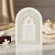 Célébrez votre amour avec une élégance intemporelle. Cette invitation de mariage Arabesque or et blanc présente un design ornemental époustouflant inspiré des motifs traditionnels arabes et islamiques. Le treillis Arabesque complexe dans la palette de couleurs or crée une atmosphère luxueuse et royale, parfaite pour les couples à la recherche d'une invitation de mariage qui allie sophistication et beauté culturelle.