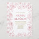 Des pivoines rouges bordent la typographie élégante de cette invitation de mariage. Vous pouvez personnaliser le texte pour votre événement.