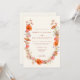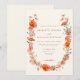 Cette élégante invitation de mariage Wildflower capture l'essence d'une célébration bohème et inspirée de la nature, ce qui la rend idéale pour un mariage d'automne, de printemps ou d'été. Le design présente une couronne de fleurs sauvages peinte à la main de manière unique, joliment arrangée avec un mélange fantaisiste de fleurs orange, marron, jaunes, vertes, terracotta, violettes et roses. Ces tons vibrants et terreux créent une atmosphère chaleureuse et invitante parfaite pour une célébration enracinée dans la beauté naturelle. L'écriture moderne et élégante en orange brûlé ajoute une touche d'élégance, garantissant que votre invitation se démarque avec son style raffiné mais bohème-chic. Placée sur un fond beige doux, l'invitation évoque une élégance intemporelle et terreuse. Les modèles faciles à personnaliser vous permettent d'ajouter facilement vos détails de mariage, faisant de cette invitation un reflet parfait de votre style unique et de l'ambiance romantique de votre jour spécial. Conçue par l'artiste Catherine Sweetman, cette œuvre d'art