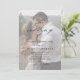 Invitation de mariage élégant avec code QR et photo avec des détails de calligraphie élégante et un texte classique superposé sur une photo verticale de portrait sur le devant. Le dos comporte une photo à fond perdu et les détails de RSVP. Cliquez sur le bouton d'édition pour personnaliser ce design.