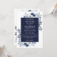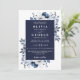 Cette invitation de mariage florale bleu marine élégante peut être personnalisée avec vos informations en typographie moderne avec le code QR de votre site web de mariage au verso. Conçue par Thisisnotme©