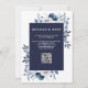 Invitation Mariage élégant avec code QR floral rustique bleu