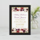 Invitation Mariage Elegant Black Gold Frame Bourgogne Floral