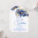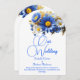 Invitation Mariage élégant Bleu Blanc Fleurs Jaunes