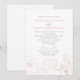 Une invitation de mariage portrait délicate avec des illustrations d'hibiscus rose gold et blush doux le long du bord inférieur avec des accents de calligraphie grise sur fond blanc. Le design floral subtil crée une atmosphère aérienne et raffinée avec une touche romantique. Tout le texte est entièrement personnalisable pour les détails de votre cérémonie et de votre célébration.