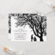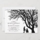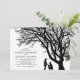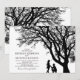 Cartes d'invitation de mariage élégantes avec une silhouette d'un arbre rustique, un couple fiancé, et un modèle simple facile à personnaliser.