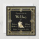 Cadre classique d'art déco et typographie élégante avec une silhouette d'or des jeunes mariés. Customisez l'avant et inverse avec vos détails de mariage.