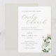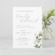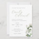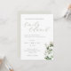 Carte d'invitation de mariage sur mesure avec calligraphie délicate avec une verdure de sauge élégante et un motif floral blanc.