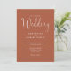 Cette invitation de mariage à l'écriture élégante terracotta peut être personnalisée avec toutes vos informations spéciales de jour de mariage au verso, y compris votre RSVP, hébergement et détails supplémentaires. Conçu par Thisisnotme©