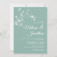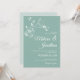 Créez la parfaite suite de mariage avec cette invitation de mariage élégante et simple qui présente un beau et délicat dessin en ligne d'orchidées blanches en haut, sur un fond vert menthe minimaliste élégant. Modifiez facilement les champs du modèle pour ajouter les noms de la mariée et du marié dans un script blanc élégant, ainsi que vos détails de date et de lieu dans une police moderne en majuscules.