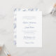 Ces invitations de mariage élégantes, bleu et blanc poussiéreux, présentent un motif floral d'aquarelle bleu vintage sur le dos, et une calligraphie élégante ainsi qu'un texte classique sur le devant de l'invitation. Le design en toile bleu à l'air français apportera une touche romantique et chic à votre papeterie mariage.