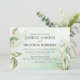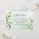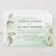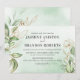 Cartes d'invitation de mariage à l'eucalyptus tendance avec un fond de lavis à l'aquarelle verte chic, un feuillage botanique vert luxuriant élégant, des accents dorés et un modèle de texte de mariage moderne facile à personnaliser.
