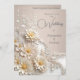 Invitation Mariage élégant Floral Beige Fleurs blanches