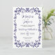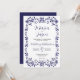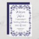 Cet élégant design de la Marine Mexicaine Lavande Bleue Florale Elegant Wedding Invitation présente une bordure symétrique de motifs floraux et foliaires stylisés dans des teintes bleu marine et lavande douce, créant un flux gracieux autour des bords. La motif est composée de formes en larme, de fleurs et d'accents étoilés, ce qui lui confère un aspect raffiné et décoratif. L'arrière - plan blanc propre au centre offre un espace équilibré pour insérer du texte ou des messages personnels, ce qui le rend idéal pour les invitations officielles ou les annonces.