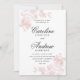Une invitation de mariage rose romantique et légèrement teintée de rouge, avec des illustrations botaniques de roses anciennes, des noms en écriture cursive et une typographie classique. Les fleurs douces donnent à cette invitation une touche féminine sans excès. Parfaite pour un mariage d'inspiration vintage, un mariage en plein air dans un jardin ou un mariage classique et intemporel. Fait partie de la collection de mariage Vintage Floral par Stacey Meacham. Trouvez des accessoires assortis et d'autres options de couleurs ici : http://www.zazzle.com/collections/vintage_floral_wedding-119209917940763393