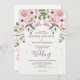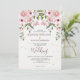 Un bouquet floral dans les tons roses et feuillage des feuilles est la base de cette élégante invitation à mariage personnalisée. Vert doux et rose avec un accent de taches d'or flottant à travers le design. Modifiez facilement les informations de votre invitation de mariage personnalisée. D'une gamme de Mariages stationnaires de Chessie's Fine Designs.