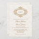Cette invitation de mariage glamour présente un fond blanc crémeux conçu avec un aspect texturé rugueux. Un cadre en faux cuivre orné et vintage est posé dessus avec vos initiales au centre, et le texte de votre invitation apparaît dans une couleur cuivre assortie.
