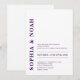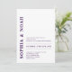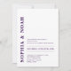 Cette invitation présente un arrière - plan blanc sophistiqué au design minimaliste. Les noms du couple sont mis en valeur par une typographie violette audacieuse et élégante, ajoutant une touche d'élégance moderne à l'invitation.