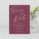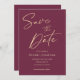 Elevez vos préparatifs mariages avec ce mariage élégant minimaliste à la mode Bourgogne Enregistrer l'invitation de la date. Cette carte de sauvegarde simple et élégante présente un design classique, alliant des tendances modernes à une élégance intemporelle. L'approche minimaliste apporte une touche chic et raffinée, tandis que l'étonnante teinte bordeaux apporte une touche de sophistication. La typographie de script de calligraphie raffinée ajoute une touche personnalisée et artistique, donnant le ton de votre journée spéciale. Cette carte exquise est un choix parfait pour les couples à la recherche d'un mélange de contemporain et de classique dans leurs annonces mariages.