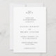 Invitation de mariage élégante avec un design simple et classique comportant votre monogramme en haut et les détails de votre événement dans des polices serif traditionnelles.