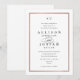 Cette invitation de mariage classique élégante en or rose est simple et polyvalente. Elle présente un design chic blanc et noir avec un monogramme, des détails en script, un cadre simple en or rose et un texte éditable formel. Cliquez sur le bouton d'édition pour personnaliser ce design.