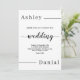 Cette élégante faire-part de mariage noire et blanche est parfaite pour un mariage moderne. le design simple présente une élégante calligraphie noire sur un arrière - plan blanc.
