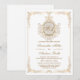 Faire-part de mariage élégant or et crème | Dessin floral orné vintage