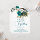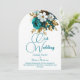 Invitation Mariage élégant Ornate Turquoise Fleurs d'or blanc