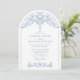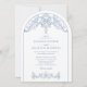 Plongez dans le royaume de l'élégance et de la romance avec nos invitations de mariage classiques Rococo exclusives. Conçues avec précision, ces invitations présentent un mélange harmonieux d'un fond blanc simple avec l'attrait d'un grand design d'arche orné bleu. Notre modèle de mariage personnalisable vous permet d'insuffler votre touche personnelle dans chaque détail. Commencez votre voyage pour toujours avec sophistication et style.