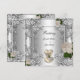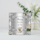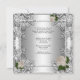 Invitation Mariage Élégant Rose Argent cœurs colombes crème, Nœud Roses Blanches